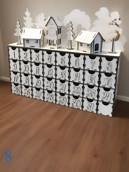 Calendrier de l'Avent en bois à assembler vous-même, ou déjà assemblé. Possibilité de personnalisation.
